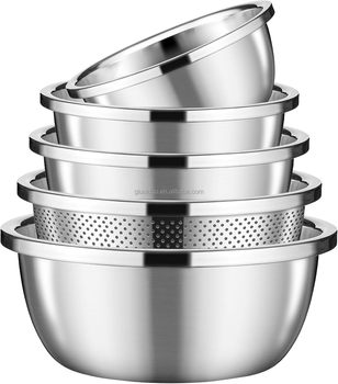 إعداد وجبة سلطة ، مجموعة من الفولاذ المقاوم للصدأ ، ومطبخ للطبخ والتخزين الصديقين ، أوعية متداخلة مسامية متناهية الصغر