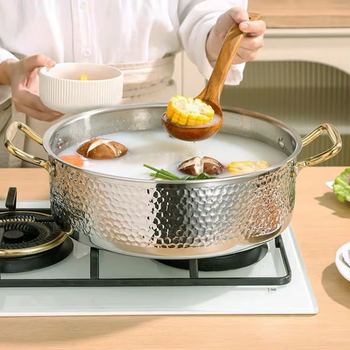 Dreilagiger Edelstahl-Suppen topf Tiefer Kochtopf mit gehämmertem Außenbereich Kompatibel mit allen Kochplatten Langlebiges Kochgeschirr